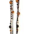 Three strand, long necklace in glorious shades of topaz, amber & brown beads sre strung on a brass chains and ribbon.