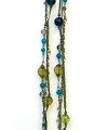 Three strands of beautiful glass beads in olive and teal, strung on brass chains and ribbon. Very elegant! One of our best sellers... Approx 55 cms